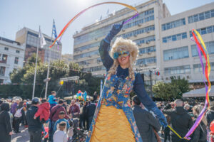 Ανιματέρ, ξυλοπόδαροι και αγαπημένοι ήρωες κινουμένων σχεδίων ξεσήκωσαν το κοινό, ενώ οι εντυπωσιακές μπαλονοκατασκευές γέμισαν την πλατεία με χρώμα και δημιουργικότητα. Τα παιδιά συμμετείχαν στα εργαστήρια κατασκευής αποκριάτικης μάσκας, ζωγραφικής και face painting, δημιουργώντας τις δικές τους αποκριάτικες εμπνεύσεις.