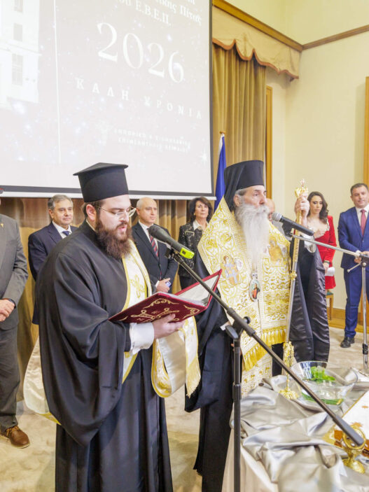 Με επιτυχία πραγματοποιήθηκε η εκδήλωση για την κοπή της πρωτοχρονιάτικης πίτας του Εμπορικού και Βιομηχανικού Επιμελητηρίου Πειραιώς (Ε.Β.Ε.Π.), παρουσία εκπροσώπων της κυβέρνησης, των κομμάτων της αντιπολίτευσης, της τοπικής αυτοδιοίκησης, των Σωμάτων Ασφαλείας και των παραγωγικών φορέων, αλλά και πρέσβεων. Τον αγιασμό τέλεσε ο Σεβασμιώτατος Μητροπολίτης Πειραιώς κ.κ. Σεραφείμ. Στο επίκεντρο της φετινής εκδήλωσης βρέθηκε με ομόφωνη απόφαση του Δ.Σ., η αναγόρευση σε επίτιμα μέλη: