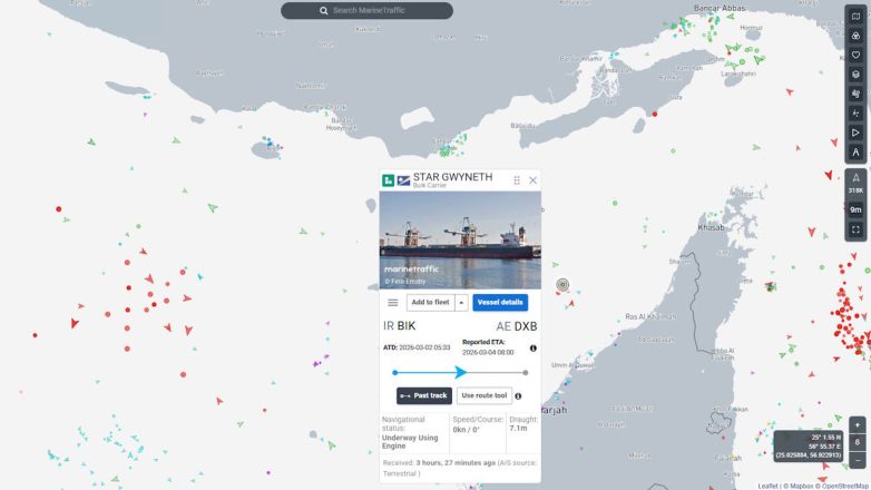 Η εταιρεία συνοδείας πλοίων Vanguard ανέφερε ότι το πλοίο χτυπήθηκε 50 ναυτικά μίλια βορειοδυτικά του Ντουμπάι, στα Ηνωμένα Αραβικά Εμιράτα. Στο μήνυμά της αναγνώρισε το πλοίο ως Star Gwyneth (IMO: 9301031), με σημαία Νήσων Μάρσαλ, ιδιοκτησίας της Star Bulk, αν και αυτό δεν έχει επιβεβαιωθεί.