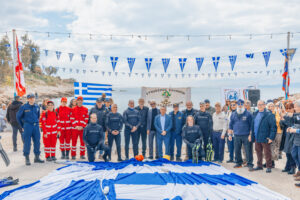 Με συγκίνηση και εθνική υπερηφάνεια, πραγματοποιήθηκε σήμερα στον Όρμο της Αφροδίτης στην Πειραϊκή, η καθιερωμένη δράση για την Εθνική Επέτειο της 25ης Μαρτίου 1821, με τη Γαλανόλευκη να τοποθετείται στην επιφάνεια της θάλασσας, δημιουργώντας μια εντυπωσιακή εικόνα.
