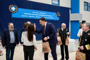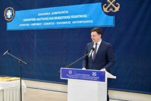 Από την πλευρά του ο Υφυπουργός Ναυτιλίας και Νησιωτικής Πολιτικής, Στέφανος Γκίκας, στον χαιρετισμό του ανέφερε χαρακτηριστικά: «Σε μια περίοδο αυξημένων προκλήσεων, όλοι εσείς, ο καθένας από το δικό του πόστο, υπηρετείτε με αίσθημα ευθύνης την Πατρίδα, τη θάλασσα και τα νησιά μας, προσφέροντας στην πολιτική ασφάλεια και στήριξη – εκεί όπου το κράτος οφείλει να είναι παρόν. Γι’ αυτό θέλω, από καρδιάς, να ευχαριστήσω τα στελέχη του Λιμενικού Σώματος – Ελληνικής Ακτοφυλακής για την προσφορά τους. Μια προσφορά που συχνά δεν αναγνωρίζεται σε όλο της το εύρος, αλλά είναι καθοριστική: στην προστασία της ανθρώπινης ζωής στη θάλασσα, στην ασφάλεια της ναυσιπλοΐας, στη φύλαξη των θαλασσίων συνόρων, στη στήριξη της νησιωτικότητας».