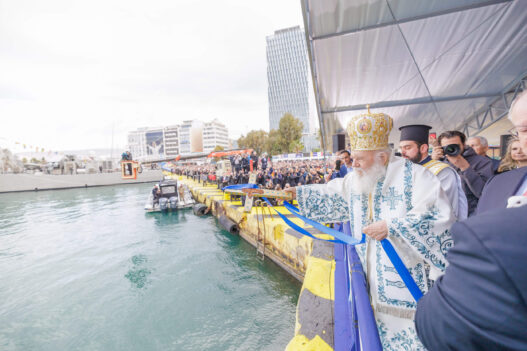 Στο λιμάνι του Πειραιά τελέστηκε με ιδιαίτερη κατάνυξη ο Καθαγιασμός των Υδάτων και η κατάδυση του Τιμίου Σταυρού προεξάρχοντος του Μακαριωτάτου Αρχιεπισκόπου Αθηνών και Πάσης Ελλάδος κ.κ. Ιερωνύμου συλλειτουργούντος του Σεβασμιωτάτου Μητροπολίτου Πειραιώς και Φαλήρου κ.κ. Σεραφείμ, παρουσία του Δημάρχου Πειραιά Γιάννη Μώραλη, πολιτειακών, πολιτικών και στρατιωτικών αρχών, εκπροσώπων των σωμάτων ασφαλείας και πλήθους κόσμου.