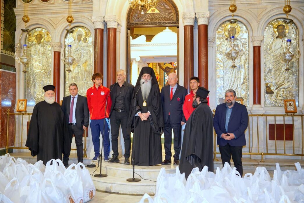 Η φιλανθρωπική αυτή δράση της τοπικής μας Εκκλησίας πραγματοποιήθηκε σήμερα, Παρασκευή 3 Απριλίου 2026, στον Ιερό Ναό Αγίου Νικολάου συμπολιούχου Πειραιώς, όπου ο Σεβασμιώτατος Μητροπολίτης Πειραιώς κ. Σεραφείμ μαζί με τον Δήμαρχο Πειραιά Γιάννη Μώραλη και τον Πρόεδρο και Διευθύνοντα Σύμβουλο του Σταδίου «ΓΕΩΡΓΙΟΣ ΚΑΡΑΪΣΚΑΚΗΣ» Βασίλη Βασιλειάδη, έδωσαν μήνυμα ενότητας και αγάπης, προσφέροντας τα απαραίτητα για το πασχαλινό τραπέζι. Μαζί, ήταν και οι παίκτες του Ολυμπιακού Αργύρης Λιατσικούρας και Νίκος Ζούγκλης.
