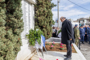 Η παρουσία όλων μας σήμερα εδώ, δεν είναι μόνο για να τιμήσουμε τον χαμό των 63 στελεχών και στρατευσίμων της Πολεμικής μας Αεροπορίας, αλλά και για να υποδηλώσουμε ότι δεν τους ξεχνάμε. Δεν ξεχνάμε τη θυσία τους, δεν ξεχνάμε την προσήλωσή τους στο καθήκον, δεν ξεχνάμε όλα εκείνα που συνθέτουν το ιδεώδες της προσφοράς των Ενόπλων μας Δυνάμεων.