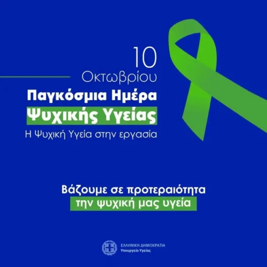 Η 10η Οκτωβρίου, Παγκόσμια Ημέρα Ψυχικής Υγείας, μας υπενθυμίζει ότι η υγεία δεν αφορά μόνο το σώμα, αλλά και την ψυχή. Η ψυχική ισορροπία είναι προϋπόθεση για την οικογενειακή ευτυχία, την κοινωνική συνοχή και την προσωπική δημιουργικότητα.
