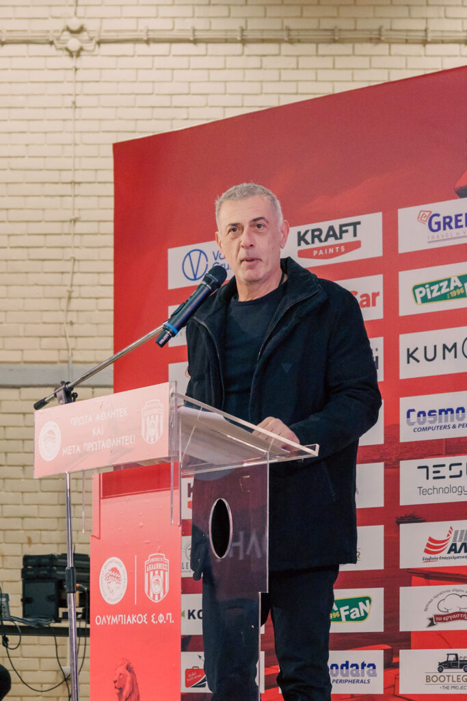 Χαίρομαι ιδιαίτερα που βλέπω σήμερα τόσα παιδιά εδώ, ανάμεσά τους και τον γιο μου, που αθλείται στον Ολυμπιακό. Οι Ακαδημίες αποτελούν θεμέλιο για το μέλλον του συλλόγου και της κοινωνίας μας, δεν διαμορφώνουν μόνο αθλητές, αλλά χαρακτήρες και οι προπονητές, με γνώση, αγάπη και υπομονή, επιτελούν σπουδαίο έργο.