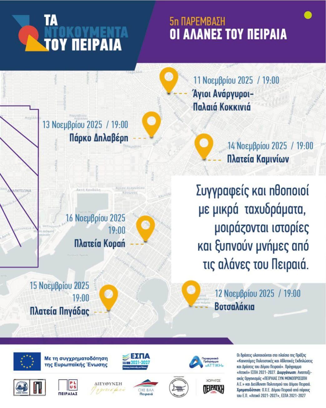 Οι δράσεις υλοποιούνται στο πλαίσιο Πράξης «Καινοτόμες Πολιτιστικές και Αθλητικές Εκδηλώσεις, Δράσεις του Δήμου Πειραιά». Πρόγραμμα «Αττική» ΕΣΠΑ 2021-2027