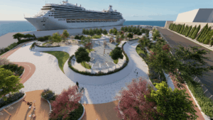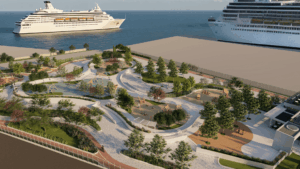 Το υπό κατασκευή Πάρκο εντός της λιμενικής ζώνης στην περιοχή της κρουαζιέρας, θα αποτελεί έναν ανοιχτό, ασφαλή και πλήρως προσβάσιμο χώρο αναψυχής και άθλησης για όλους τους πολίτες, συμπεριλαμβανομένων των ατόμων με αναπηρία. Η πρότυπη παιδική χαρά θα προσφέρει ένα σύγχρονο και δημιουργικό περιβάλλον για παιδιά όλων των ηλικιών, ενώ ο ποδηλατόδρομος θα συμβάλλει στην προώθηση των ήπιων μορφών μετακίνησης και της βιώσιμης κινητικότητας.