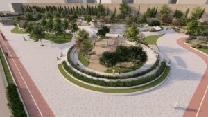 • Πρότυπη παιδική χαρά 2.200 τ.μ. με διακριτές ζώνες για όλες τις ηλικιακές ομάδες και ΑμεΑ