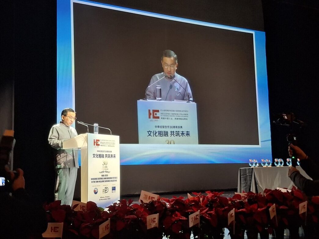 Από την επετειακή εκδήλωση του Ελληνοκινεζικού Εμπορικού, Βιομηχανικού, Τουριστικού και Ναυτιλιακού Επιμελητηρίου, με αφορμή τη συμπλήρωση 30 ετών από την ίδρυσή του με τίτλο “1995-2025. Γεφυρώνοντας Πολιτισμούς και Δημιουργώντας το Μέλλον στις Ελληνοκινεζικές Επιχειρηματικές Σχέσεις”, στο Κέντρο Πολιτισμού “Ελληνικός Κόσμος”