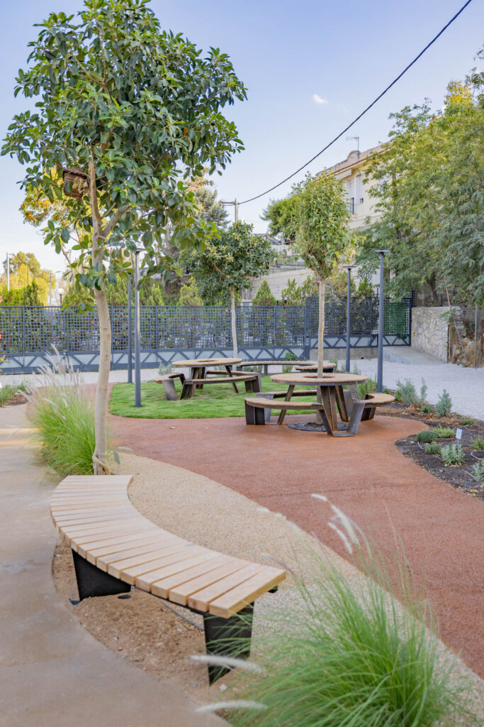 Ο χώρος περιλαμβάνει αρωματικά φυτά και θάμνους, μικρό βοτανικό κήπο για ανακάλυψη και χαλάρωση, χλοοτάπητα για παιχνίδι, ξεκούραση και δραστηριότητες, τραπέζια πικνίκ και καθιστικά για όμορφες στιγμές, κεντρικό μονοπάτι από οικολογικά υλικά που συνδέει το πάρκο με τον αστικό ιστό, συστήματα φωτισμού από ανανεώσιμες πηγές ενέργειας με χαμηλή κατανάλωση, φωλιές πουλιών για την ενίσχυση της επικονίασης, μετεωρολογικό σταθμό, σταθμό μέτρησης ποιότητας της ατμόσφαιρας, γωνιές ανακύκλωσης, μικρές γωνιές στάσης που «προσκαλούν» σε χαλάρωση.