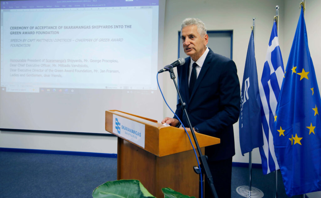 Με μακρά διεθνή εμπειρία στο ναυτιλιακό κλάδο και ειδικότερα στη ναυτιλιακή ασφάλεια, ποιότητα και περιβαλλοντική συμμόρφωση, ο Capt. Ματθαίου υπογράμμισε τον στρατηγικό ρόλο που διαδραματίζουν τα ναυπηγεία, με την τεχνογνωσία τους και τις επενδύσεις σε νέες «καθαρές» τεχνολογίες, στη βελτίωση της ζωής ενός πλοίου. Τόνισε ότι η συμμετοχή των Ναυπηγείων Σκαραμαγκά στο οικοσύστημα «αναβαθμίζει ουσιαστικά τις υπηρεσίες που παρέχονται σε πιστοποιημένα πλοία και ενισχύει τη βιωσιμότητα του Green Award παγκοσμίως».