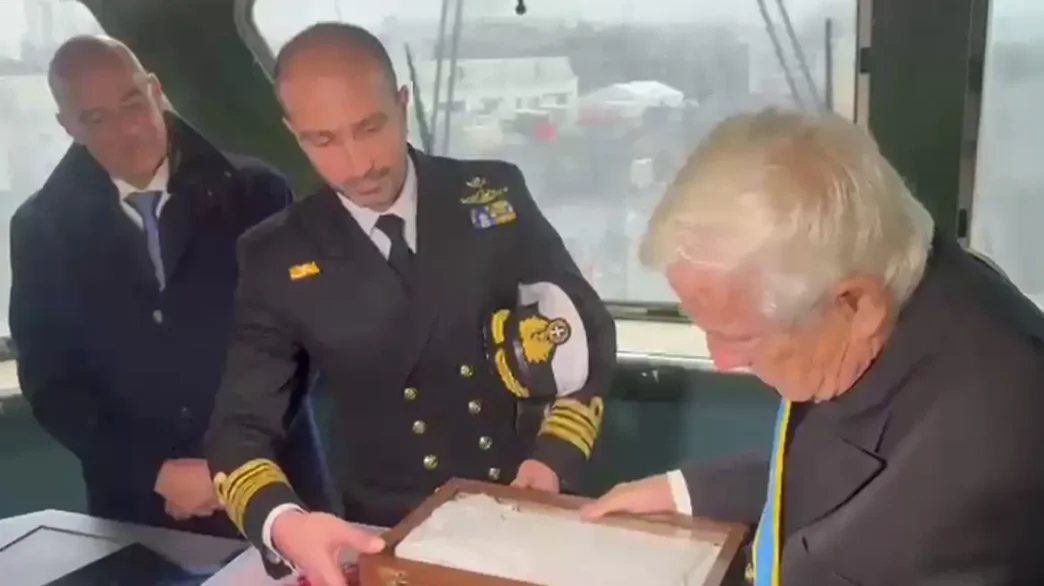 Δώρο το το αυθεντικό «διπαράλληλον» του ναυάρχου Κουντουριώτη, κυβερνήτη του Αβέρωφ, έδωσε στον κυβερνήτη της φρεγάτας Belharra που παράλαβε σήμερα το Πολεμικό Ναυτικό, ο Πάνος Λασκαρίδης.